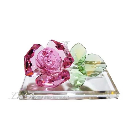 ◉嬌豔欲滴的粉色玫瑰斜躺在水晶底座上,搭配三片晶瑩剔透的淺綠色葉子,令人忍不住想要擁有!