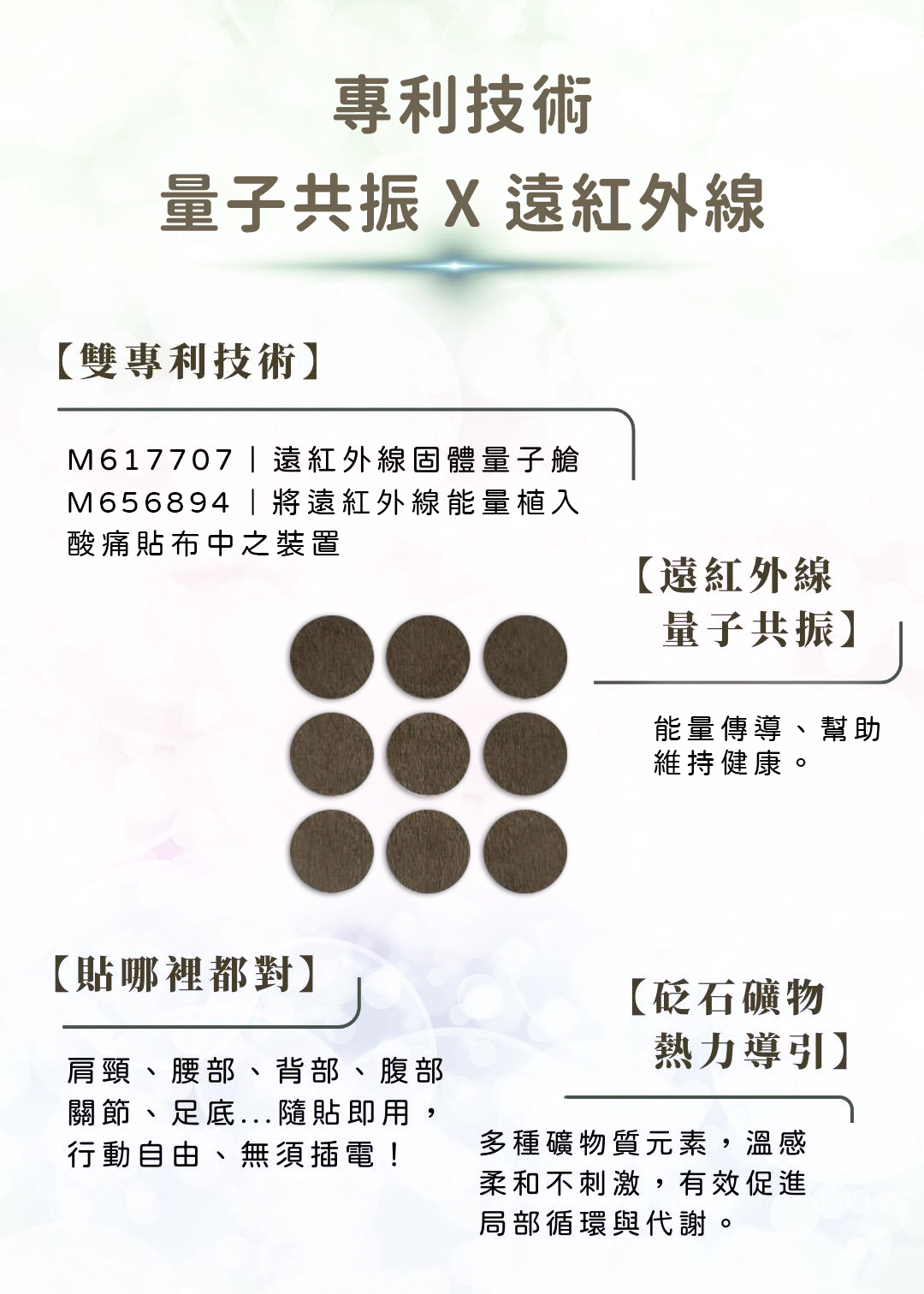 ✦專利字號M656894:將遠紅外線能量植入酸痛貼布中之裝置