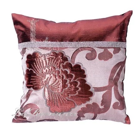 ◉高貴典雅的緹花設計,玫瑰金的布料會隨著光線變換不同的顏色。抱枕背面為整片的棗紅色絲絨布料,側邊飾條鑲滿高級晶亮水鑽,更添貴氣與質感,即使在昏暗的燈光下,水鑽飾條依然會閃閃發光,令人愛不釋手。