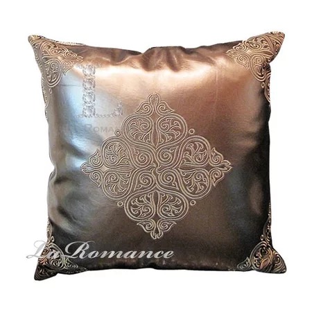 ★寶藏清倉★咖啡金仿皮革圖騰雙面抱枕
