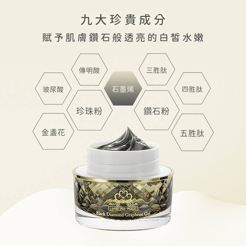 ♕集結深層修護、美白保濕、有感逆齡的石墨烯黑鑽凍膜,All IN ONE 縮時保養,大幅縮短保養時間與金錢,一瓶輕鬆美肌。♡ 緊緻 x 修護 x 美白♡ 多種珍貴成分,直達肌底♡ 縮時保養,再現逆齡奇蹟