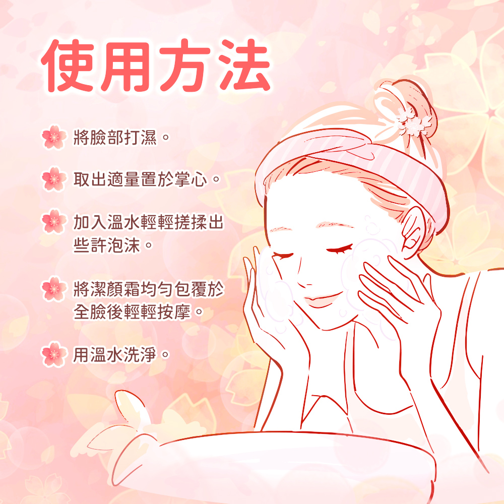 ◉將潔顏霜均勻包覆於全臉後輕輕按摩。
