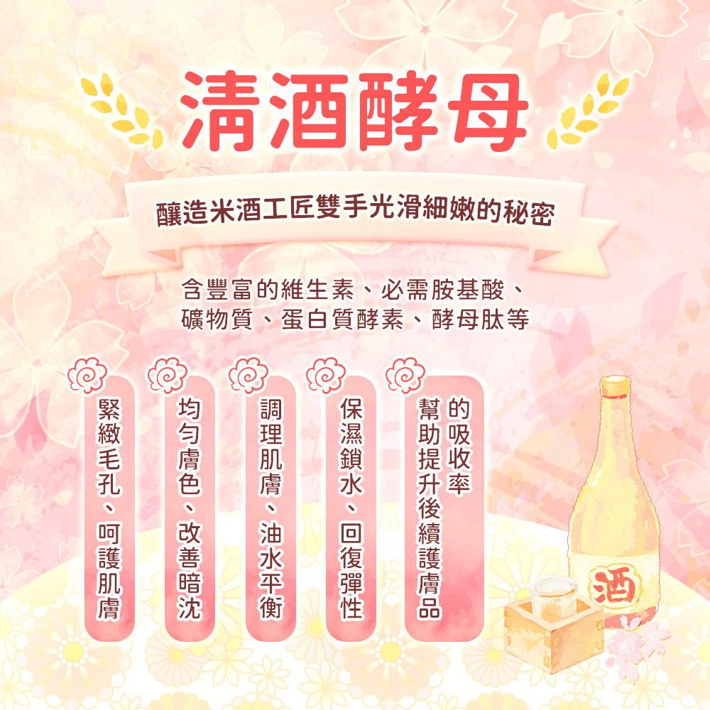 ◉主要成份:胺基酸、海藻醣、白柳樹、清酒酵母。