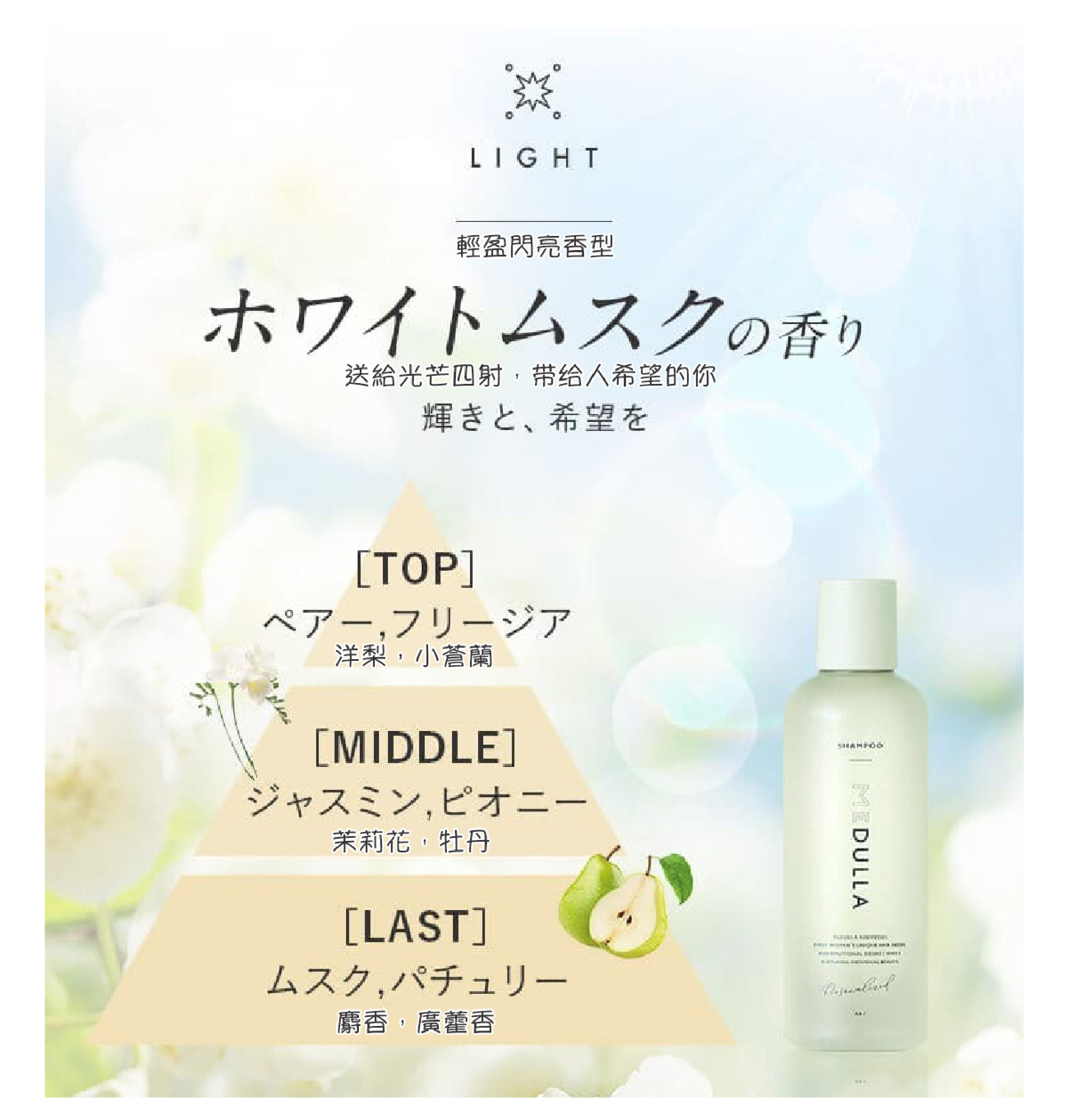 C. 輕盈閃亮 (光澤柔順×修護受損) 純白給光芒四射、帶給人希望的妳
