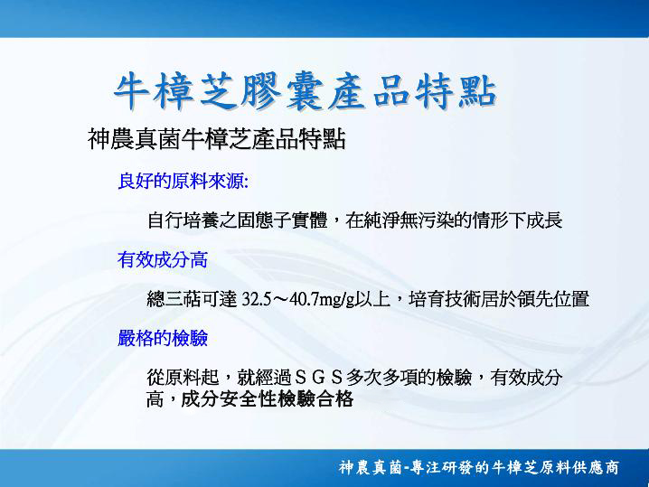♕牛樟芝是珍貴的天然植物,其所含的三萜類、多醣體、SOD超氧化歧化酶、腺苷、B-D-葡聚醣… 等活性成分,可以幫助人體生理機能發揮均衡保健的功效。