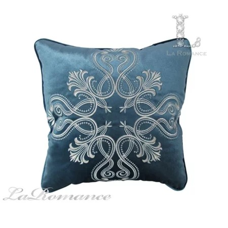 【商品特色】藍綠色的真絲絨布,搭配銀色繡線織成的歐式貴族圖騰,不但十分有質感,而且顯得高貴又典雅。