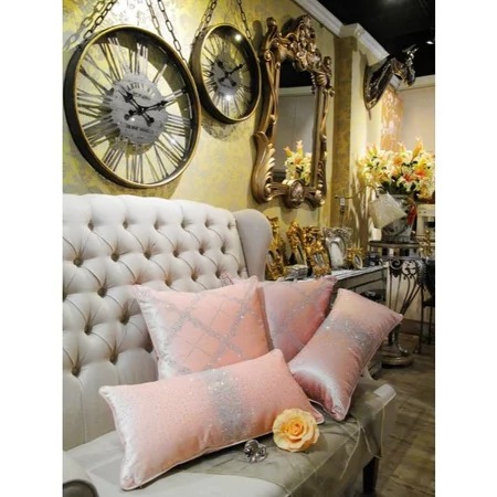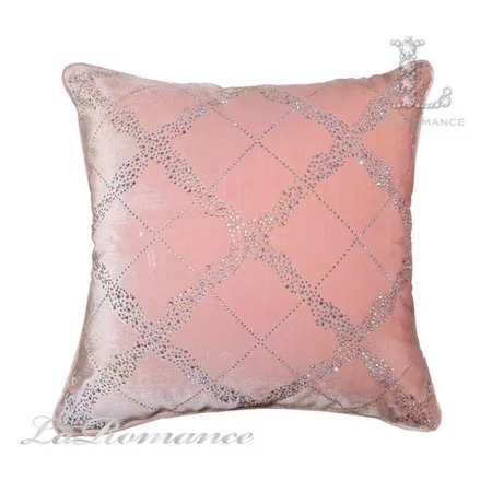★寶藏清倉★【奢華系列】水鑽菱格紋絨布抱枕套 ♡粉晶♡
