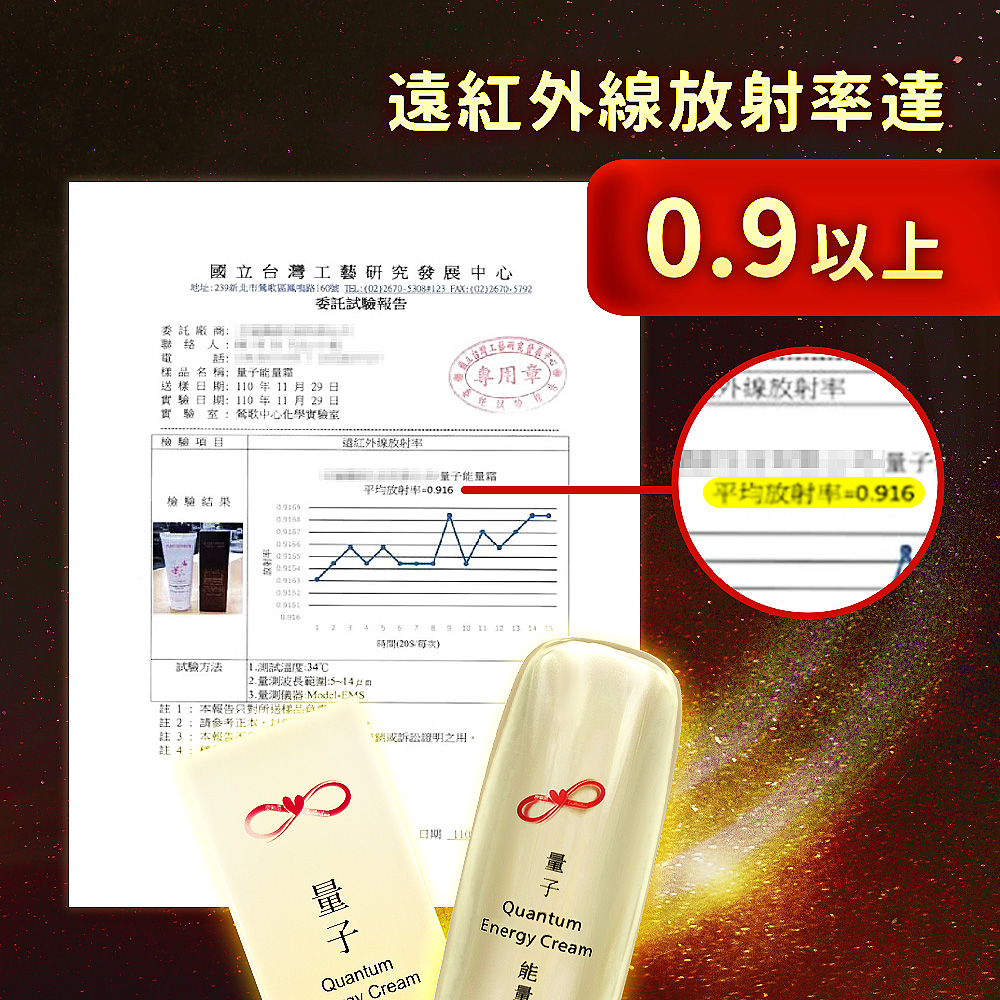 ♕經台灣唯一專利認證量子艙植入量子,遠紅外線放射率達0.916。