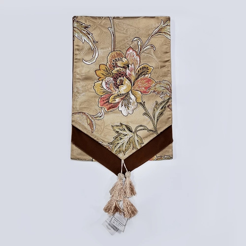 ★寶藏清倉★香檳刺繡花朵圖騰桌旗