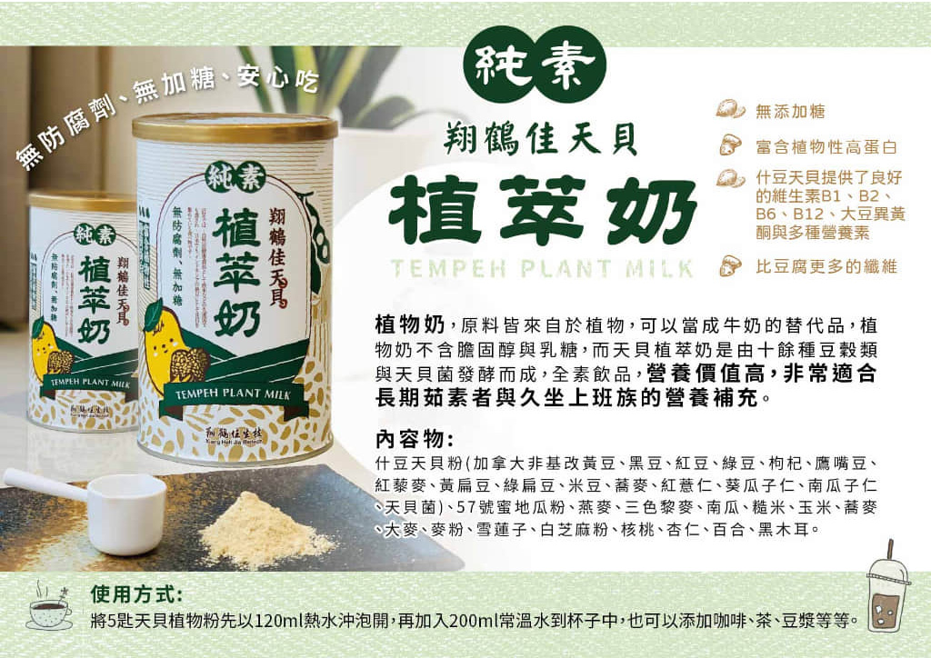 ◉獨家篩選出的台灣天貝菌種與什豆天貝,共同發酵而成,低溫乾燥後細緻研磨成粉,保有特殊胺基酸鮮味,非常符合國人口味與營養